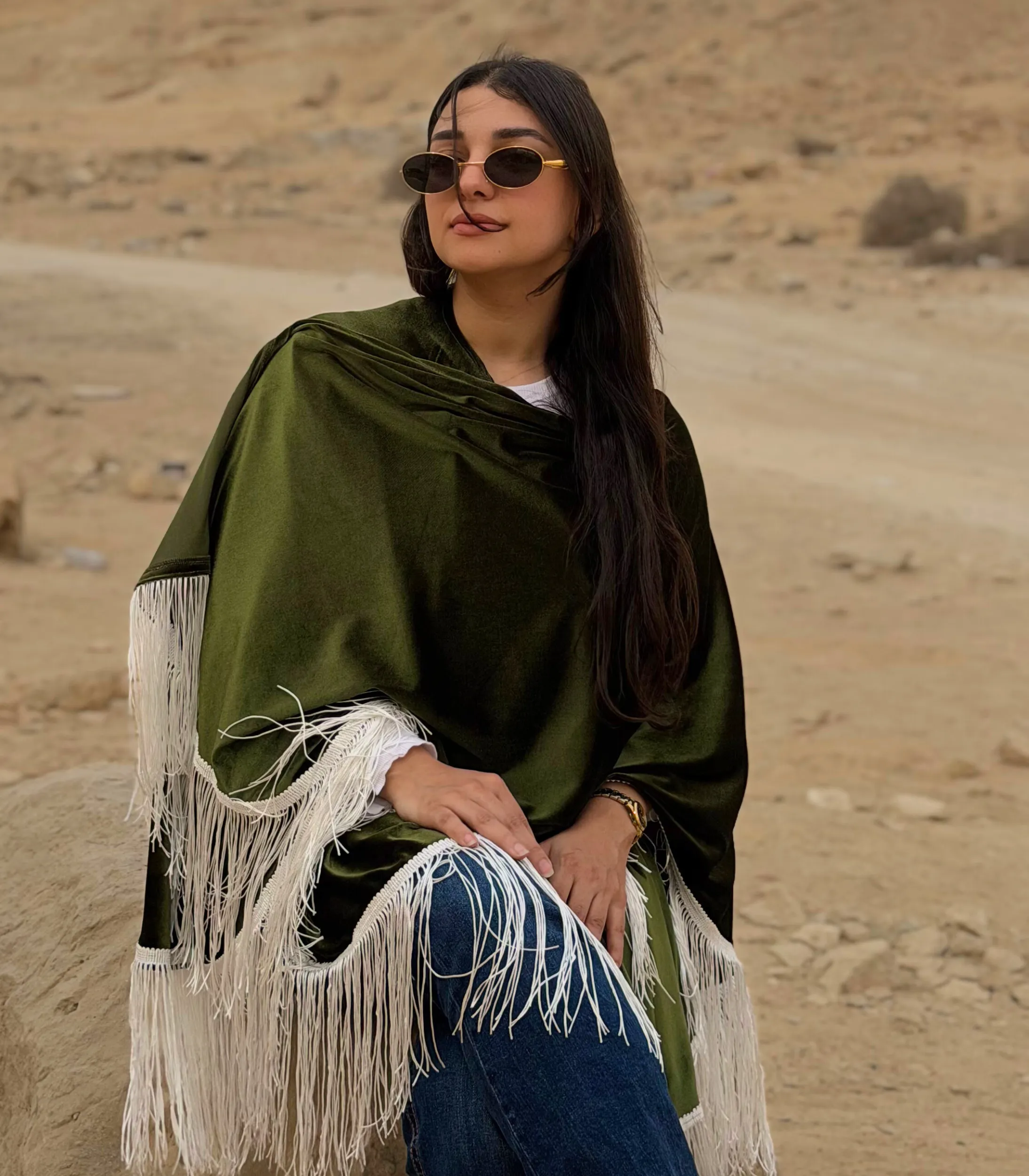 The ultimate layering piece for Ramadan nights, our Velvet Kaftan Shawl combines the fluid grace of a traditional kaftan with the luxurious warmth of premium velvet. Finished with delicate fringe detailing, it is an essential statement of elegance.